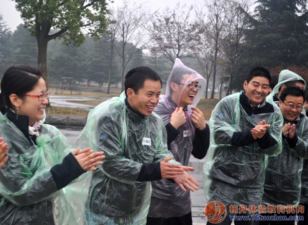 江南的初冬,陽澄湖畔,氣溫不低,但空氣濕度很大,天氣還下著小雨,所以還是蠻冷的。可是,這樣的天氣似乎并沒有讓Teleplan團(tuán)隊(duì)的氣氛降低,激情減弱,在核舟教練團(tuán)隊(duì)的帶動(dòng)下,大家更加充滿了活力與笑容,穿上雨披,開始了課程游戲的體驗(yàn)與互動(dòng)。
