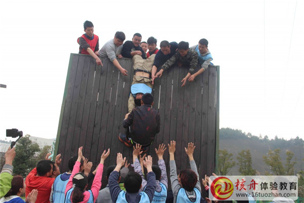 通過這些項目,學員們的心都連到了一起,此時的他們是一支無往不勝的團隊!在第四天的下午,學員們來到了室外場地,在這里迎接他們的是一堵四米高的高墻——求生墻(也叫畢業墻),這是他們挑戰的最后的一個項目,最終整個團隊在不到8分鐘的時間內完成了挑戰!所有隊員興奮的相互擊掌慶祝,并在求生墻下留下了紀念的照片。