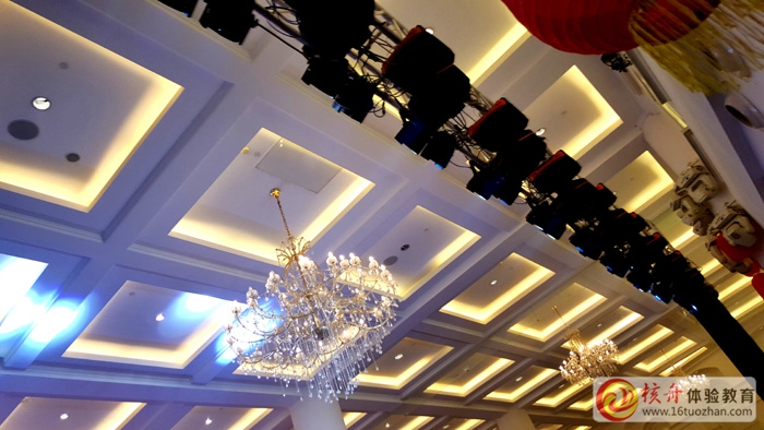 燈光、音箱全部采用懸空與自動調控設計,既保證了多樣化匹配的效果,同時也防止了音箱附近桌位由于音源太近而帶來的刺耳……充分照顧到每個位置的觀眾……